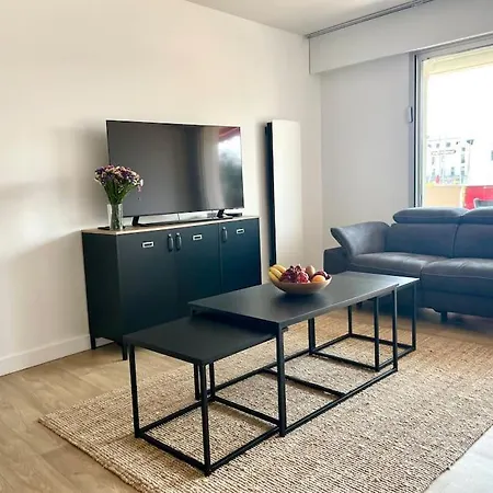 Vue Port De Plaisance : Le Voilier Lägenhet lägenhet erbjuder ett komplett kök samt rum med teve, plattskärms-TV med satellitkanaler och brandvarnare. Casino Barrière de La Baule ligger 5 minuter med bil från lägenheten och Esplanade Benoît ligger 1 km bort.